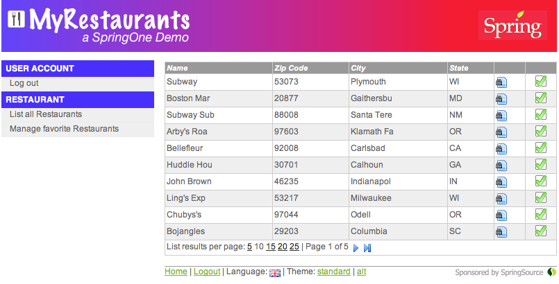 Simple, JPA-based web application for managing users and restaurants, with the ability to add restaurants as favorites to a user. It is basically the foundation for the MyRestaurants-Social application (seeSection 23.5, “MyRestaurant-Social sample application”), and does therefore not use Spring Data Neo4j.