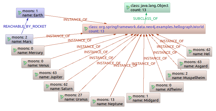 The Hello Worlds sample application is a simple console application. It creates some worlds (node entities) and rocket routes (relationships) between worlds, all in a galaxy (the graph), and then prints them.